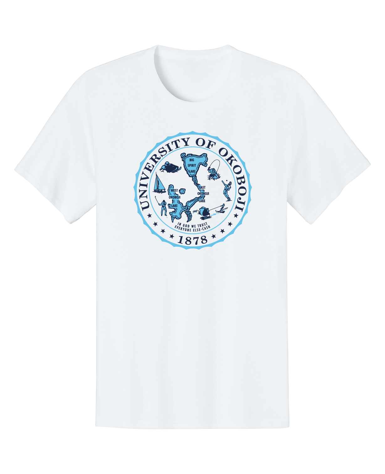 Okoboji Crest Blue Tee - White